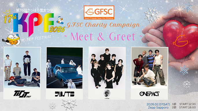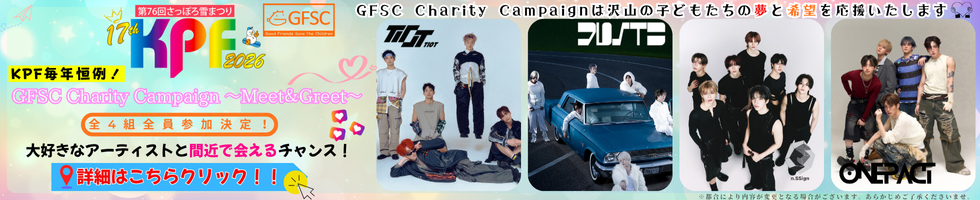 来年2月7日に開催される「第76回さっぽろ雪まつり17th KPF2026」でも出演アーティストと所属事務所の温かい協力のもと、出演者とGFSC Charity後援者が交流する毎年恒例のGFSC Charity Campaign~Meet&Greet~が決定した。