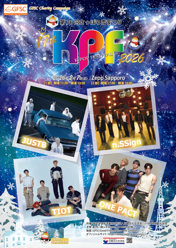 「第76回さっぽろ雪まつり17thKPF2026」公式ポスター初公開! n.SSign / JUSTB / ONE PACT / TIOT プレリザーブ2次先行 1月7日まで
