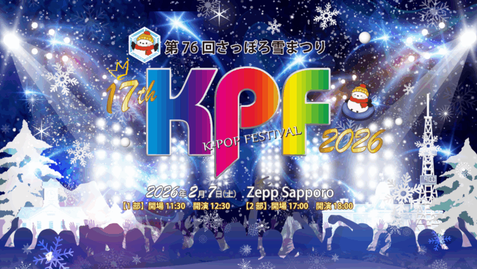 さっぽろの冬を音楽で彩る、17回目の開催となる「第76回さっぽろ雪まつり17th KPF(K-POPFESTIVAL)2026」は2026年2月7日(土)Zepp Sapporoにて開幕する。
