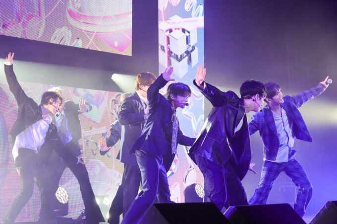 最後は、MYTRO。ショウヘイのソロダンスからテイ、ユンジェが加わり3人の華やかなダンスステージで観客の視線を集中させると、「LA・LA・LA LOVE SONG」で観客の耳を集中させた。3人と入れ違いでステージに現れたのはチェピョンとウヒョク。2人で「レイニーブルー」を表情豊かな歌声で歌い上げ、最後は5人で「Life Goes On」と、MYTROの多彩な魅力を披露した。