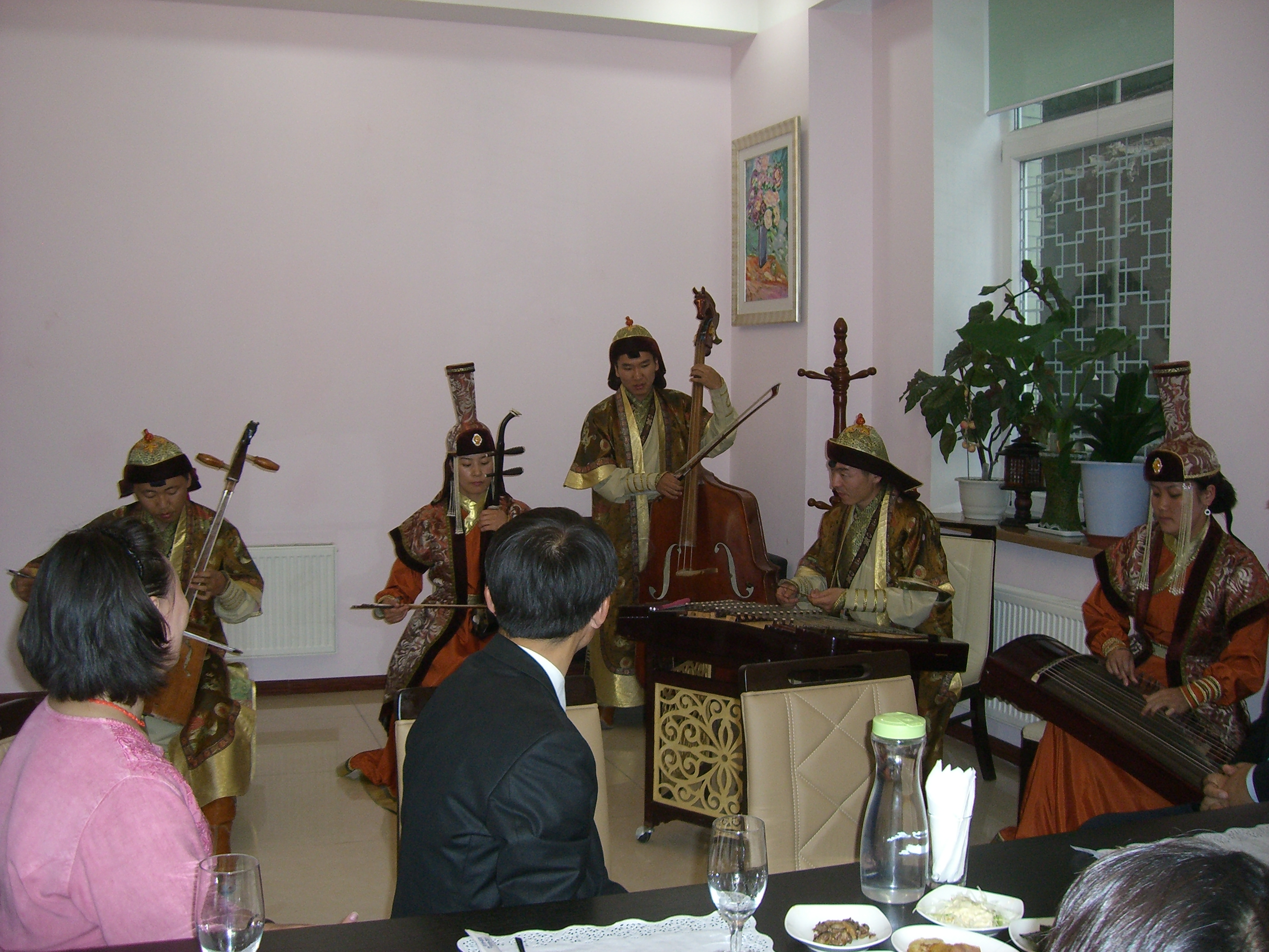 モンゴルの正装姿で楽器を奏でる音楽隊の生演奏も歌も、素晴らしかったです。