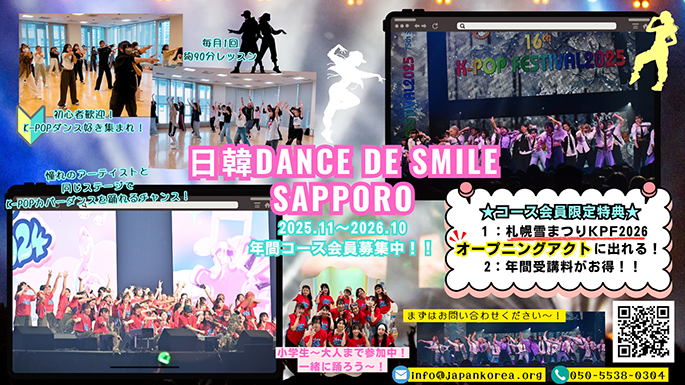 ・さっぽろ雪まつりKPF2026終了後も、コース会員として年間の日韓Dance de Smileのレッスンになるべく参加する事が出来る方