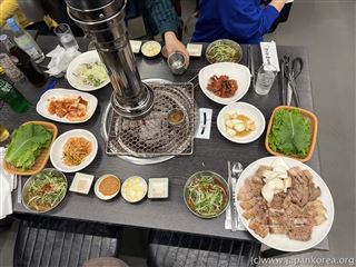 最初の食事は、チェジュ名物の黒豚です^^
